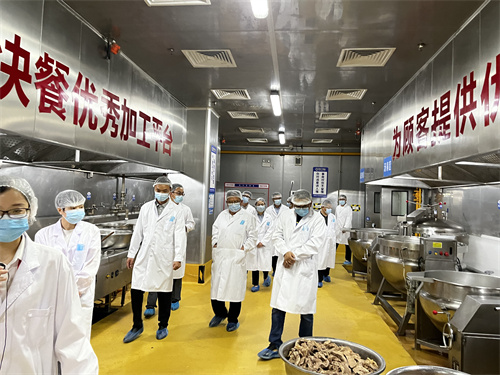调研组一行先后实地考察了面粉采购基地(五得利集团亳州面粉有限公司)、肉食采购基地(安徽省东昕食品有限公司)、水果采购基地(赵桥胜杰蔬果)、豆之花中央厨房等地,详细了解了机关食堂储存间、操作间、供应区和配送区,现场查看食材存放、卫生保洁、菜品供应、餐厨垃圾处理等,并就机关食堂供餐就餐和食品安全工作提出明确要求。