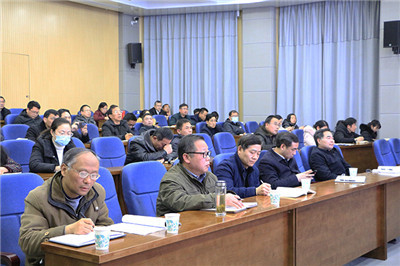 为进一步准确领会和全面把握党的十九届五中全会精神的丰富内涵和核心要义,市委宣传部近期组织开展“举旗帜•送理论”基层宣讲活动。12月24日下午,在行政楼一楼智慧学习厅召开“举旗帜·送理论”党的十九届五中全会精神宣讲报告会,市直机关工委书记戴飚作宣讲报告。校党委副书记、院长周美启,党委副书记、纪委书记张磊,党委委员、副院长张文敬,副院长陈群,党委委员、学生处长崔晓燕,各部门负责人、马克思主义学院全体教师、各部门宣传和意识形态工作人员参加报告会。校党委书记廉保军主持报告会。