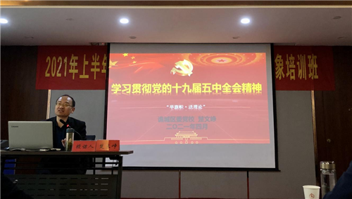 培训班围绕深入学习党的十九届五中全会精神、重温党的光辉历程、党章党规、发展党员工作细则等主题,邀请市委党校副教授、区委党校副校长、区委党校教研室主任、区干部教育培训师资库教师作了专题辅导。大家表示通过对理论知识的学习,进一步加深了对党的认识,拉近了与党的距离,切实提高党员发展对象的政治理论水平和党性修养,进一步端正入党动机。