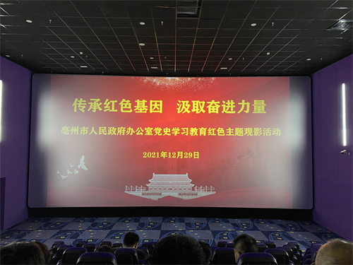 为持续深入开展党史学习教育,进一步弘扬爱国主义精神,激发党员爱国热情,感悟伟大抗美援朝精神,2021年12月29日,亳州市人民政府办公室组织党员干部集中观看爱国主义电影《跨过鸭绿江》。